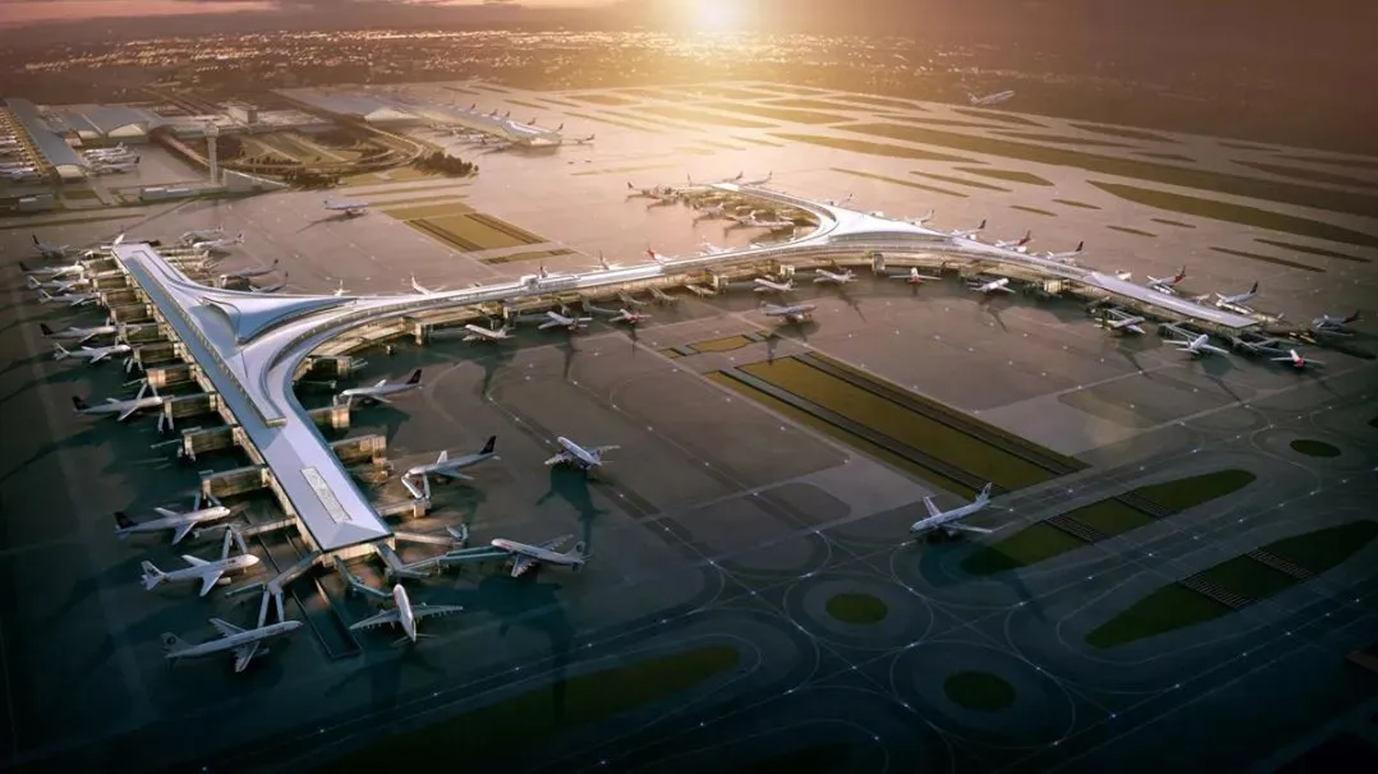 (上海浦东国际机场鸟瞰图,图片来自网络)